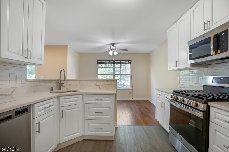 Great turnkey investment - ideal for investors! Leased through June 30, 2025. Beautifully updated townhome in a great location backing to trees with a private deck. Overflowing with updates including newer wood floors, paint, carpeting, insulated windows and sliding glass doors, high efficiency LED lighting, kitchen appliances and sink/faucet, custom kitchen cabinetry, quartz counter tops, bathrooms renovated. The large kitchen includes a breakfast bar, lots of cabinet space, and stainless steel appliances. Gracious primary bedroom suite boasts skylights and an en-suite bath with newer spa-like walk-in shower. The finished lower level offers a huge family room, low-maintenance wood-like luxury plank vinyl, and access to the patio and the yard. Great space to work from home, movie nights, and more. Extra electrical outlets installed in the home for added convenience! Central A/C, gas heat, attached 1-car garage, plus access to community pool & playground. A true gem! Some photos virtually staged.