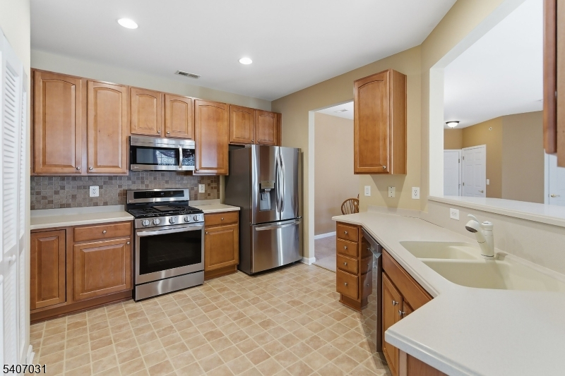 Welcome to carefree living in the active adult 55+ community of Hearthstone at Hillsborough. This is a North facing unit located on the second floor. The building is handicap modified with a ramp and has an elevator with access to the second floor. The interior is well lit, spacious, with custom blinds and is inviting to all. The kitchen features include stainless steel appliance and a breakfast bar island. The open concept to the dining space flowing to a spacious carpeted living room area. With the flick of a switch, your fireplace lights for a cozy evening. Enjoy Community Amenities such as the Clubhouse with many activities, a fitness room, game room, open area, an outdoor pool, tennis and pickle ball courts. In close proximity to Routes 206, I-287 and 22 making it well-situated for regional travel.
