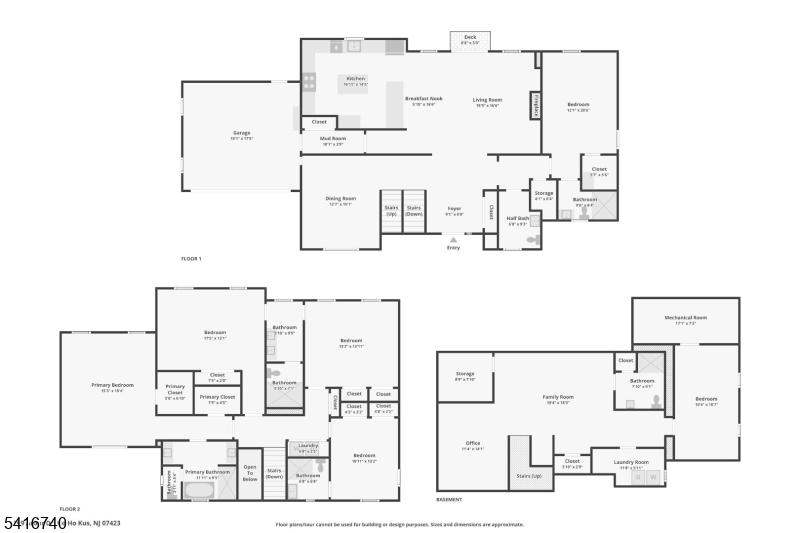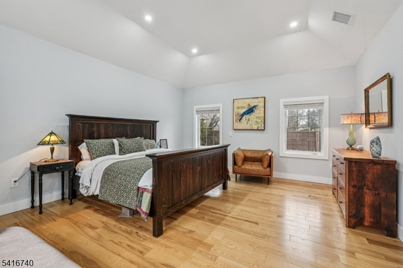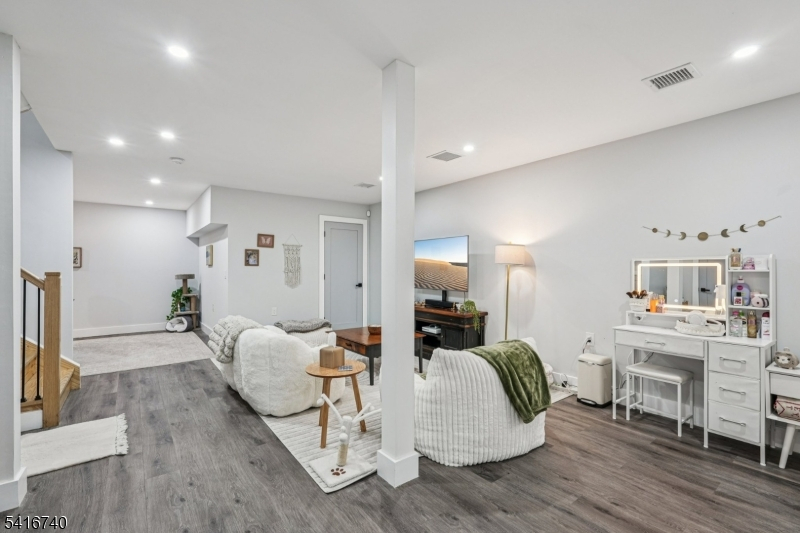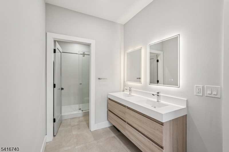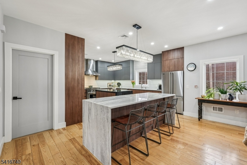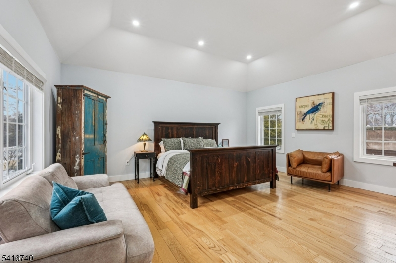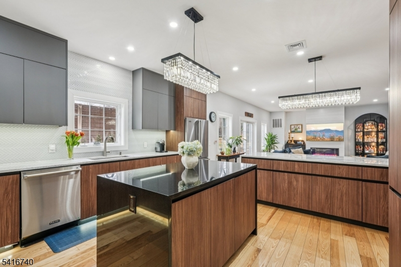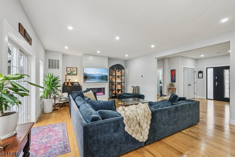 Striking luxury home in one of Bergen County's most prestigious towns. Approx. 3,300 sq ft plus a fully finished lower level, crafted with exceptional design and modern elegance. Main level offers a sun-filled living room with fireplace, formal dining room, and a showpiece gourmet kitchen with dual natural-stone islands, Viking appliances, and custom European cabinetry, along with a first-floor ensuite bedroom, mudroom, and powder room. Upstairs features a serene primary suite with two WICs and spa-inspired bath, a junior suite, two additional bedrooms with Jack-and-Jill bath, and laundry. The lower level adds a spacious family room, private bedroom with egress, office/bonus room with full bath ideal for generational living plus a second laundry. Exterior upgrades include professionally added shrubs and greenery, wrought-iron fencing, and Belgium block borders. Additional highlights: 4" ash wood flooring, Porcelanosa finishes, 9' ceilings, multi-zone HVAC, attached 2-car garage, deck/patio, sprinklers, and prime Ho-Ho-Kus location.