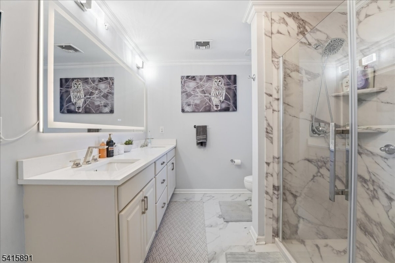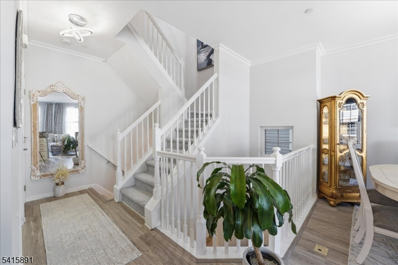 Welcome to one of Coventry Park's most beautifully upgraded homes. This meticulously maintained 3-bed, 2.5-bath townhome has been transformed top to bottom simply unpack and enjoy. The main level features brand-new laminate flooring, custom crown molding, and abundant natural light. The fully remodeled kitchen boasts all-new cabinetry, quartz countertops, new stainless appliances, and a breakfast bar flowing into a bright, open-concept living and dining area. Upstairs, the primary suite offers a walk-in closet and fully remodeled en-suite bath. The second bedroom features a custom closet system and all bedrooms have new plush carpeting. Second-floor laundry with new overhead storage cabinetry. Every bathroom remodeled with quartz countertops and new fixtures throughout. Additional upgrades include a new hot water heater, whole-home humidifier, water softener, and all-new light fixtures throughout. The attached garage is fully reimagined with tile flooring, ceiling storage racks, and fresh paint. Minutes to major highways, NYC transit, and shopping. Central A/C 1-Car Garage + Driveway Built 2013.
