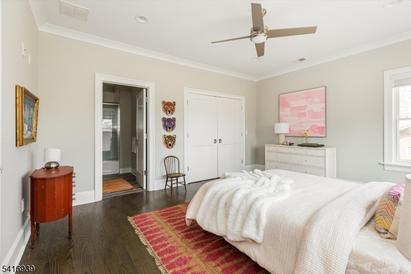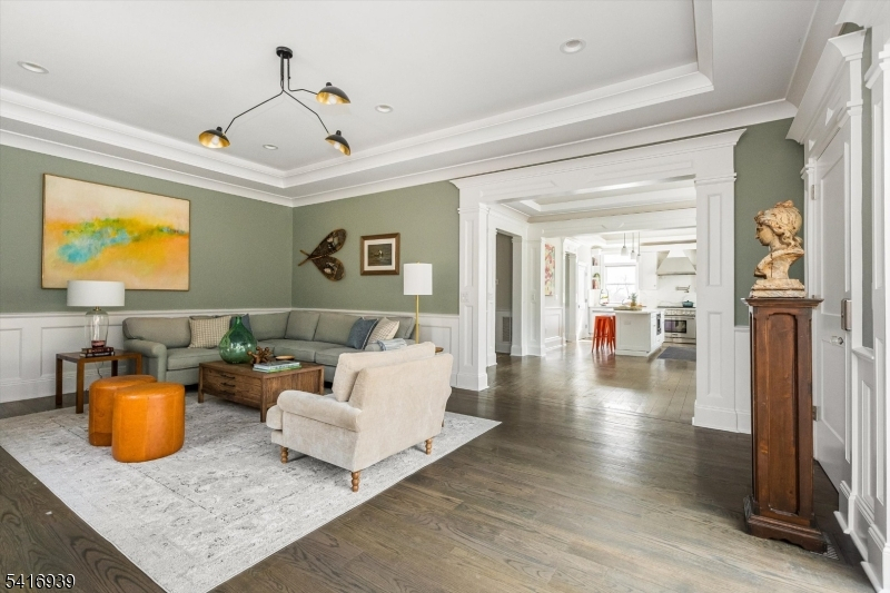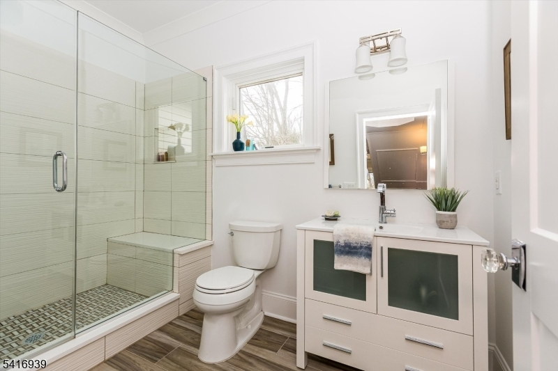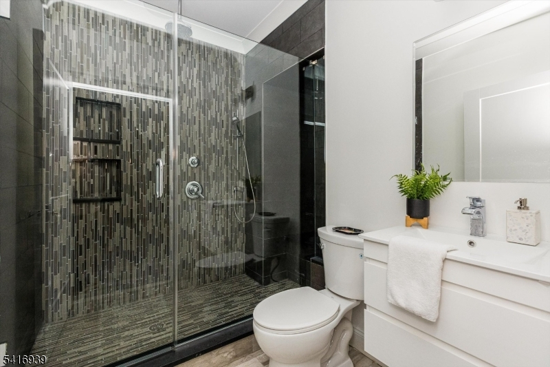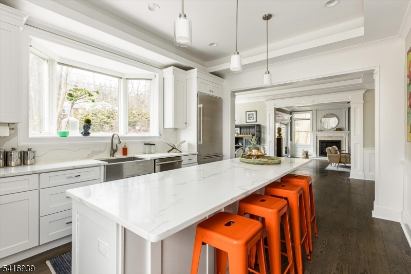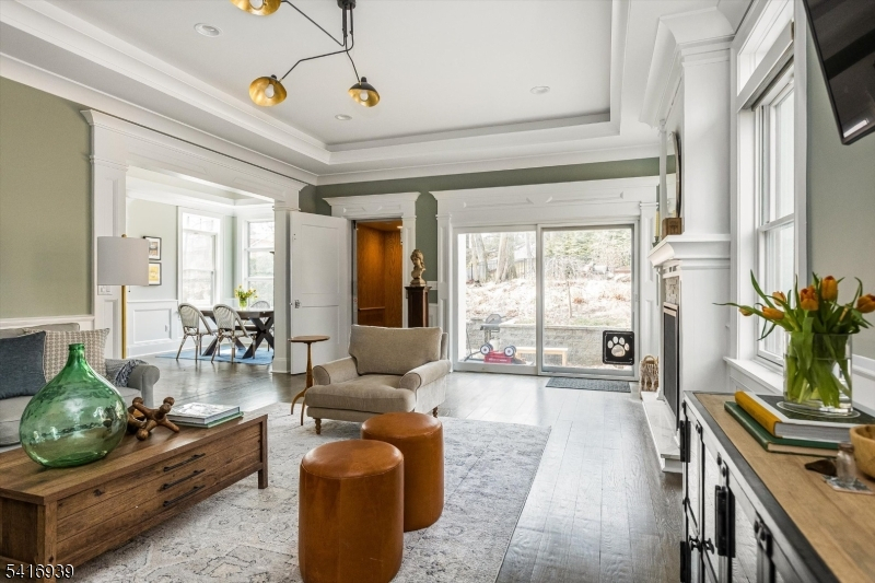 Built in 2017, this 9-year-young Colonial offers the peace of mind of nearly new construction, beautiful views, and a versatile floorplan designed to adapt to every stage of life. The main level features a luxurious kitchen with center island seating, breakfast nook, and separate dining room perfect for both everyday living and entertaining. The living room features a fireplace and sliding doors opening to the private backyard oasis, creating an effortless indoor/outdoor flow. An additional family room provides the ideal space for a home office or den. A ground-level bedroom with full bath offers excellent flexibility for guests or extended living, and an elevator services the home for added convenience. Upstairs are three bedrooms including the spacious primary suite with walk-in closet and full bath, along with an additional hall bath. The top floor playroom was designed alongside an occupational therapist to develop motor skills and coordination through play -- complete with a climbing wall! An oversized attached 3-car garage adds everyday convenience. A whole house water filtration system has been added and landscaping in the front and back has been thoughtfully designed by award winning Green Jay Landscaping and blooms in every season using native species designed to attract butterflies, hummingbirds and more! The backyard also features a nature playscape and newer flagstone patio. This home is a unique Montclair find and will check all the boxes on your wishlist.