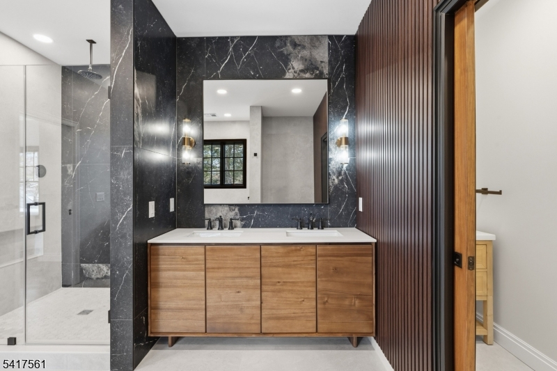 Set in the heart of River Vale, New Jersey, 803 Marshall Road presents a one-of-a-kind new construction defined by bold design and elevated craftsmanship. From the moment you arrive, the home impresses with striking curb appeal and a thoughtfully designed exterior.Inside, white oak flooring and abundant natural light complement soaring 10-foot ceilings and an open, airy layout. The chef-inspired kitchen features a quartzite island, high-end appliances, a spacious pantry, and refined finishes. A rotunda-style dining area offers sunset views, while a 25-foot sliding glass door creates seamless indoor-outdoor living, opening to an expansive deck.The main level includes a bedroom, office, and two full bathrooms, offering flexible living options. Upstairs, the primary suite features coffered ceilings, a custom walk-in closet, and a spa-like bathroom. Three additional en-suite bedrooms and a bonus room provide versatility for a variety of uses.The lower level offers approximately 2,500 sq ft with high ceilings, ready to be customized. Conveniently located near parks, shopping, and transportation, this home offers a rare opportunity in Bergen County.