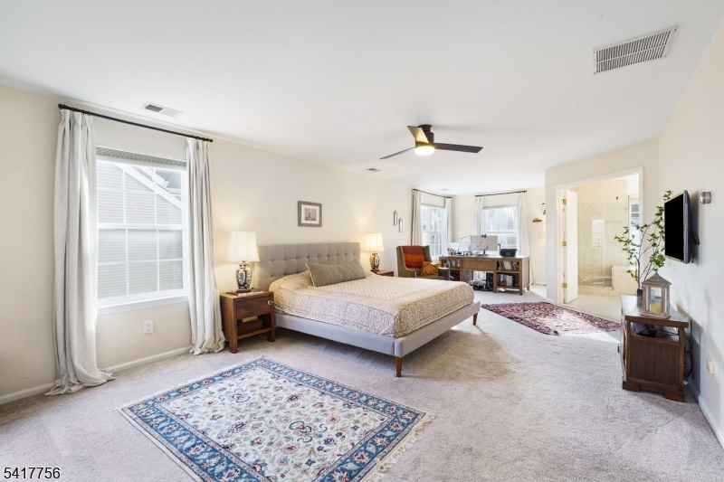 Welcome to this south-facing four bedroom, three and a half bath single-family home situated off a cul-de-sac in Bridgewater's Stratton Meadows. The home has a fenced-in backyard with a large deck and a finished walk-out basement. The two-story entrance meets a spacious living room, followed by a two-story family room with a gas fireplace. Adjacent to the family room is a large kitchen with a sun-lit dining area. The dining room with French door access is currently a flex room, which can be used as an office, study, playroom, or even a bedroom! A powder room and laundry room complete the first floor. Three bedrooms line the upstairs hallway along with a hall bath containing double sinks and a large linen closet. Across the hall, the spacious owner's suite features a walk-in closet, a sitting area that can be used for additional seating or an office, a full ensuite bathroom with jetted tub and a tiled stall shower. The basement features a large finished open area, a full bathroom, and plenty of storage space. Additional features include dual-zone heating and cooling, an in-ground sprinkler/irrigation system, and a central vacuum system. New updates done in 2024 include new roof, new carpet throughout the second floor, resurfaced hard wood throughout the first floor, whole house fresh paint, and updates to fans, lighting, and switches. Being part of Stratton Meadows HOA, homeowners can enjoy amenities such as the swimming pool, clubhouse, tennis courts and more.